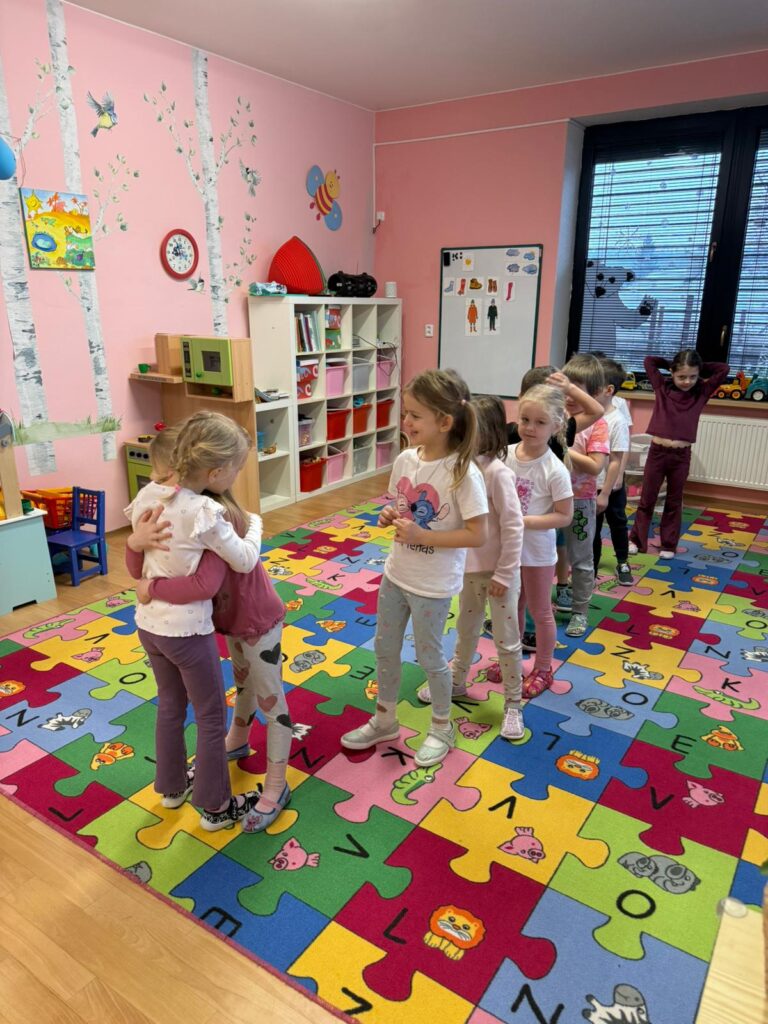 pohybové říkanky “pojďte na rozcvičku”, “kutálí se brambora”, “kytička”