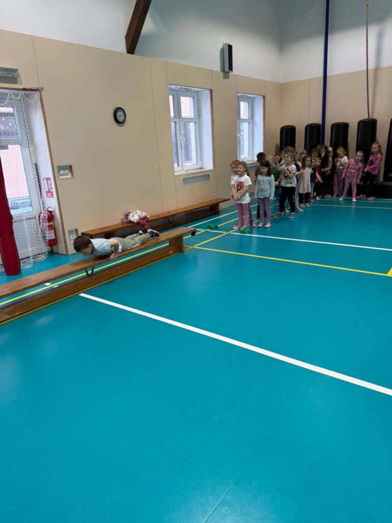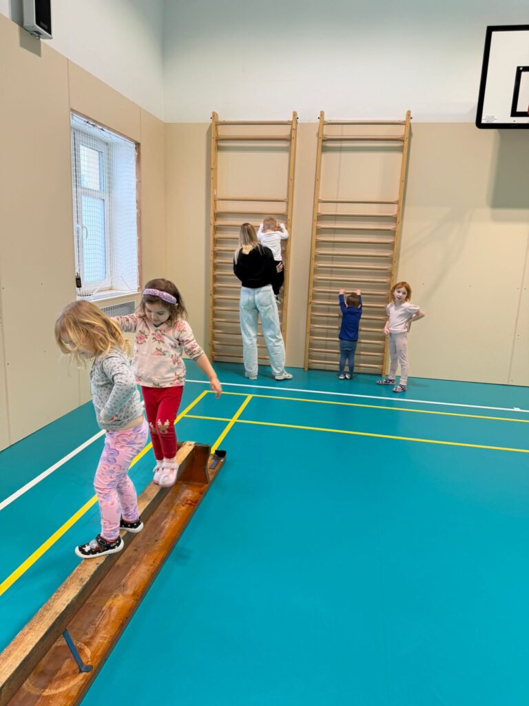 Pobyt v tělocvičně – opičí dráha, rozvoj hrubé motoriky a celkové koordinace těla.