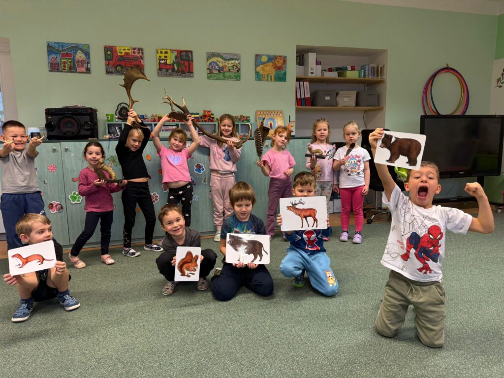 Návštěva lesa a doprovodný program- opékání špekáčků, lesní stezka (poznávání stromů, rostlin a zvířat), ukázka „Železného koně”