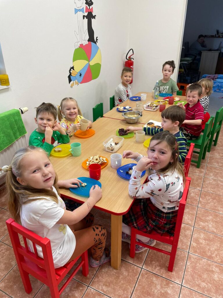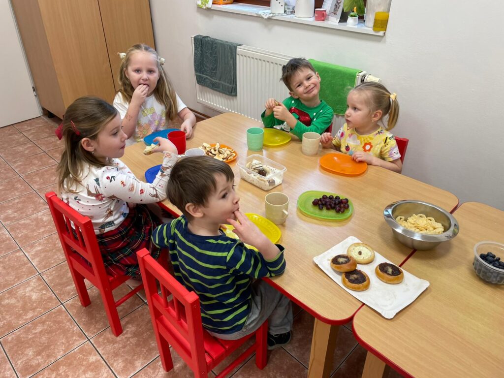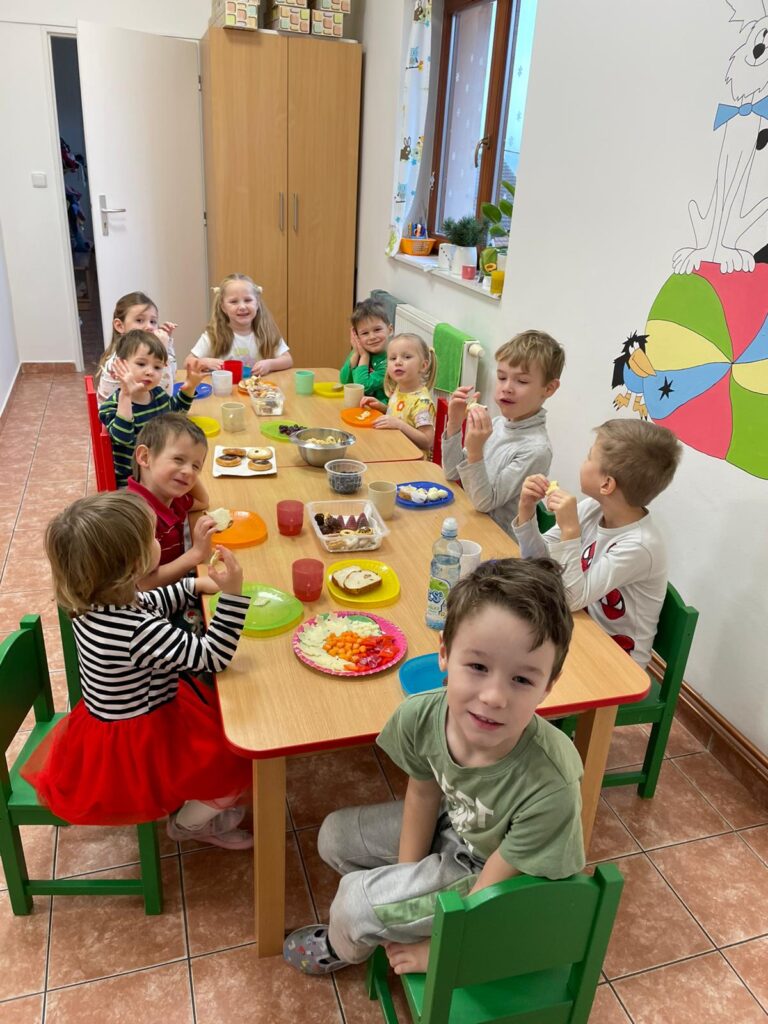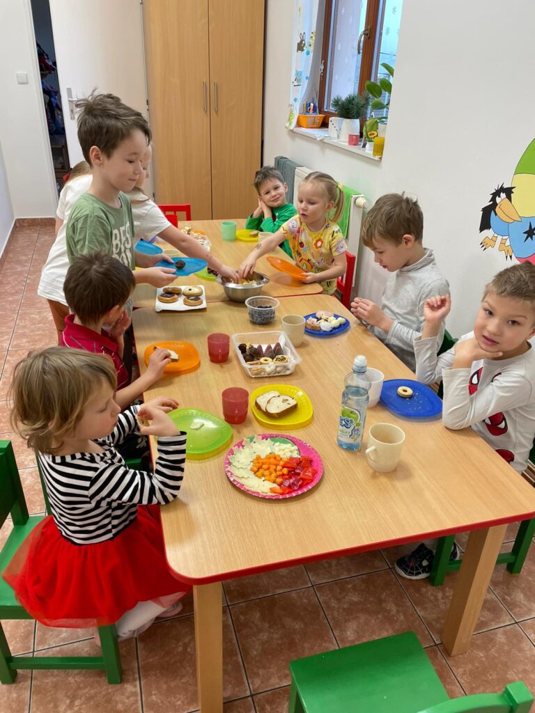předštědrovečerní hostina ve školce – výroba jednohubek a občerstvení, Vánoční nadílka ve školce.