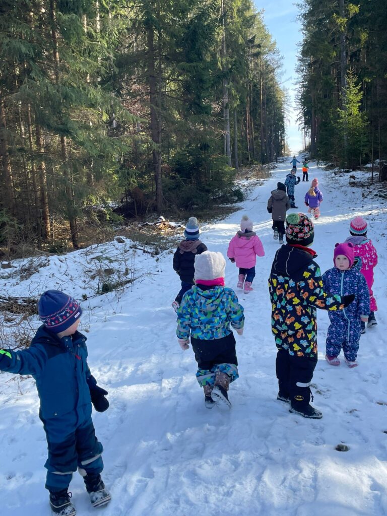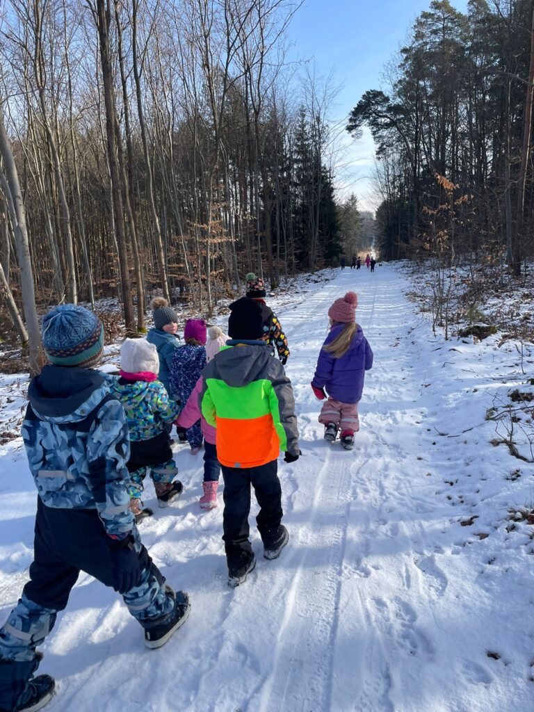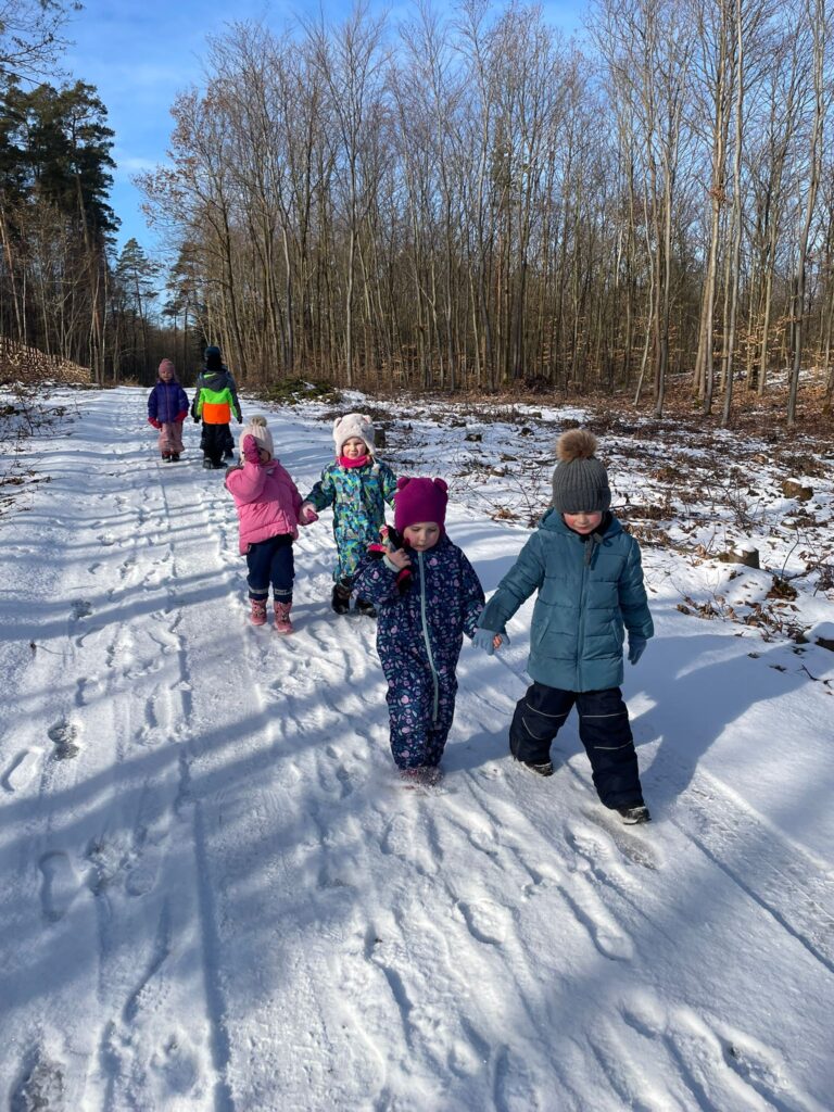 Hry se sněhem – klouzání se na sněhu, koulování, stopování zvířat v lese…
