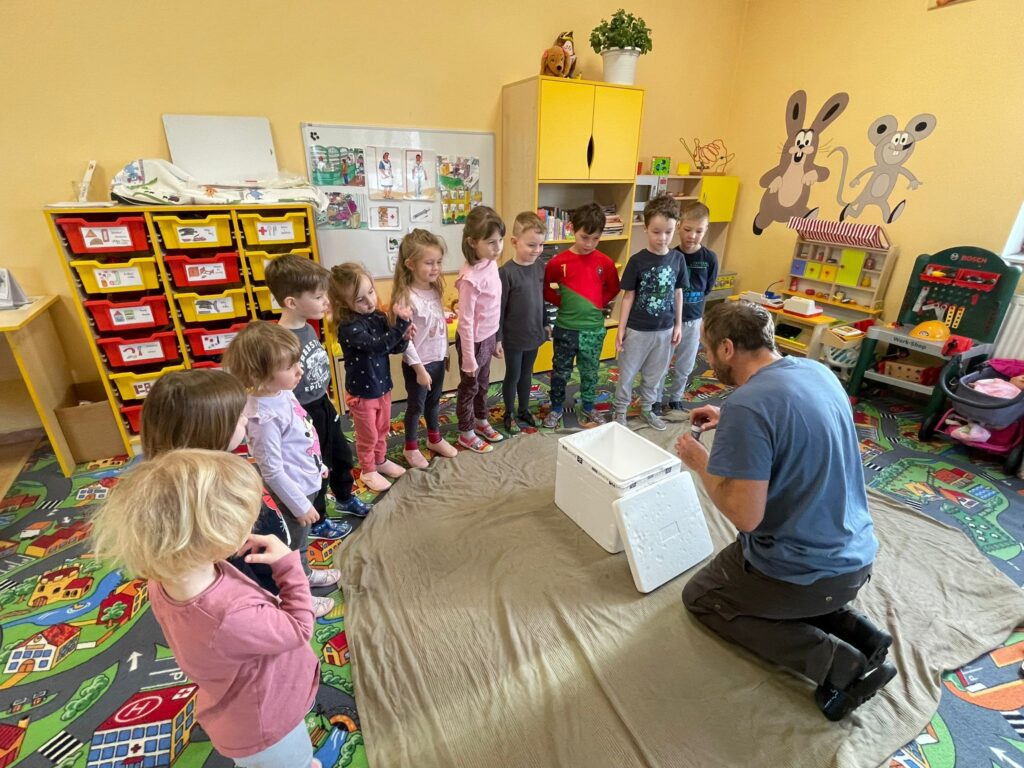Rozhovory nad obrázky, poznávání zvířat, co dělají zvířátka v zimě – jak jim můžeme pomoci – krmení