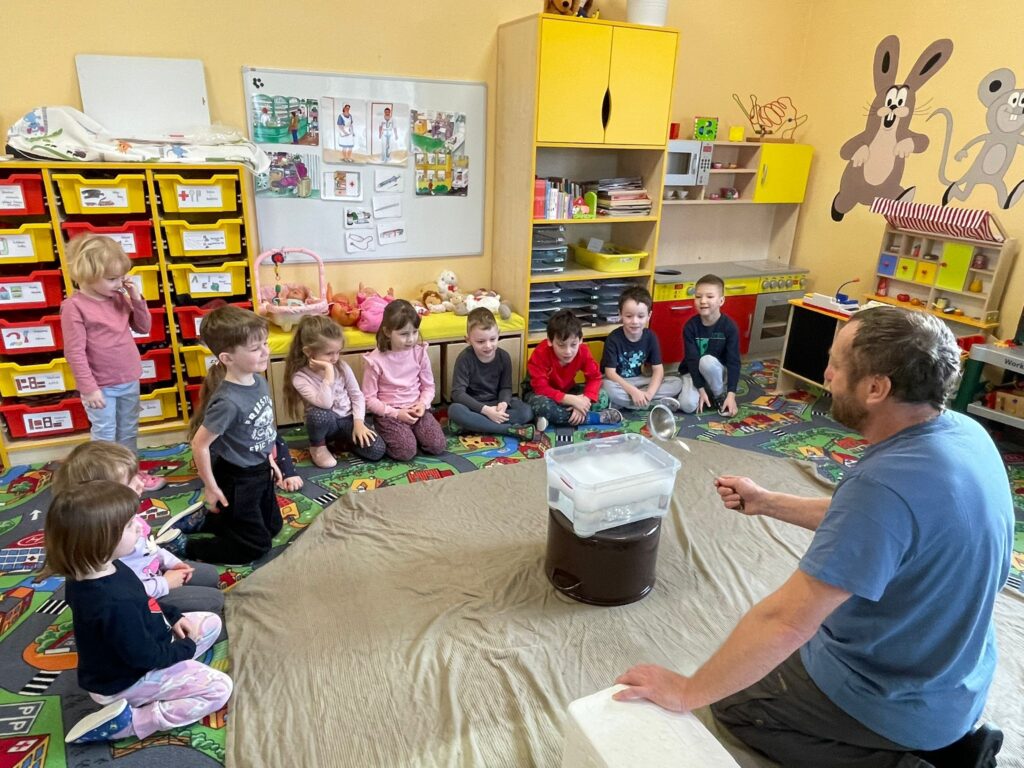 Děti si poslechly pohádku z cyklu Chaloupka na vršku, co se dělo o Vánoce a následně si samy vyprávěly o tom, jak doma tyto svátky slaví, jaké zvyky dodržují, …