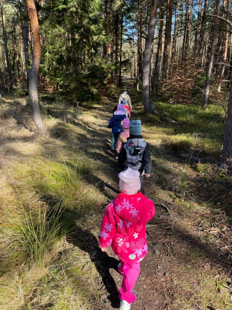 procházka do lesa, hry s přírodním materiálem